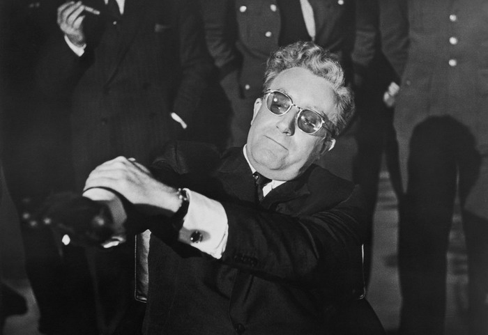 Based on the novel "Red Alert" by Peter George, the film is set at the height of the tensions between Russia and the United States, when all it would take to destroy the world was one push of a button. And General Jack D. Ripper (Sterling Hayden) is just the man to do it. Convinced that the Russians have infiltrated America's "vital essence," the crazed Ripper gives the go code to the 843rd bomb wing to attack Russia, setting in motion a series of darkly hilarious vignettes involving gung-ho soldiers, wacky generals, spying Russians, drunken premiers, battles with soda machines, fights in the War Room, and the Russians' top-secret Doomsday Machine. Shot in black and white, the film has three main centers of action: one of the B-52 bombers, on which a group of loyal men know they are about to start World War III; Burpelson Air Force Base, where Group Captain Lionel Mandrake (Peter Sellers) is trying to convince everyone that Ripper has gone mad and the bombing must be stopped; and the War Room, where President Merkin Muffley (Sellers again) is trying to make peace with the Russians. The finale featuring Sellers as Dr. Strangelove is a comic gem. Hayden, George C. Scott, Slim Pickens, Keenan Wynn, and Sellers (in three roles) are especially terrific in what may be the funniest, most poignant black comedy ever made, a vicious satire on the farcical aspects of the military and the cold war.
